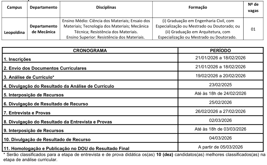 29/01/2026 | Edital para Professor Substituto – Mecânica